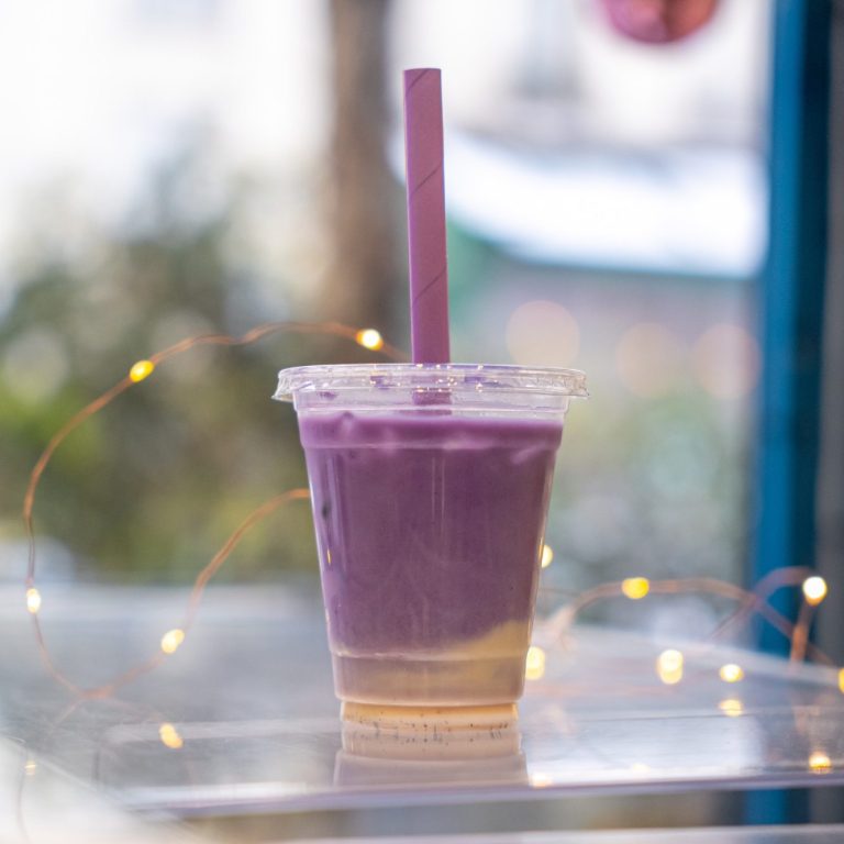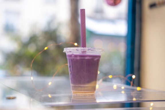 Découvrez notre boisson du moment à l'UBE, déclinée en version chaude ou froide avec du lait végétal et un sirop de vanille maison.
